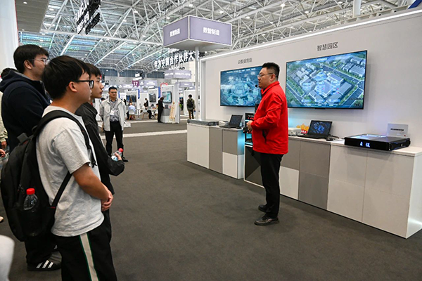 在大会展览特供的金牌导览讲师的热情引导下,广东科技学院华为ICT学院的师生团开启了畅游于各种先进的科技应用之中。