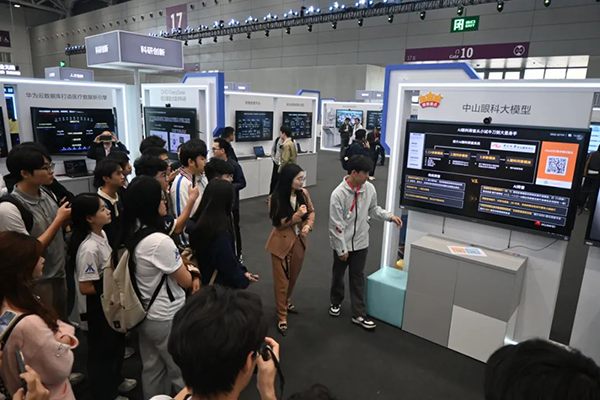 中山大学与华为联合研发的ChatZOC眼科大模型引发同学们的关注。作为国内首个百亿参数级眼科AI,该模型依托华为昇腾算力平台,整合中山眼科中心百万级临床数据及最新诊疗指南,实现了眼病智能诊断突破。何婉玲同学表示“这次大会让我真切感受到,AI不仅是技术的突破,更是人类与医疗融合的新起点。ChatZOC的发布,让我看到科技如何切实服务社会,尤其是为医疗资源匮乏的地区带来希望。”