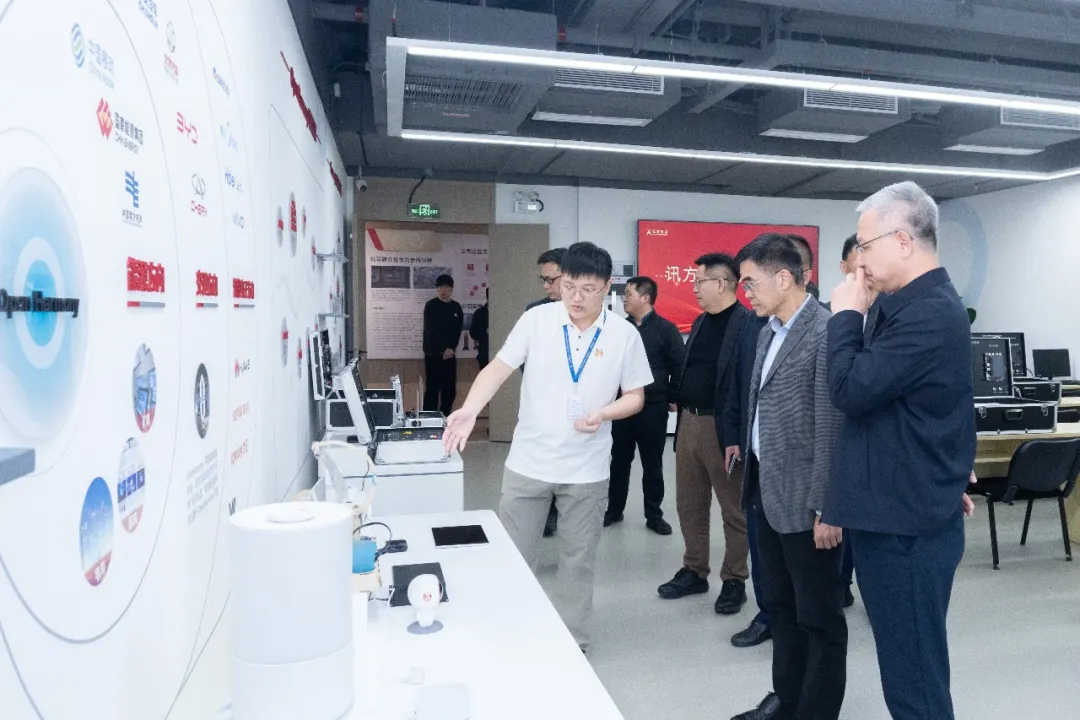 拜访领导第一时间参观了豆豆钱官网技术展厅,详细分析公司开展历程、业务模块与经营理念。刘国锋总裁介绍了公司依托产业优势深耕ICT人才培养的具体实践,并回顾了近年来与市人社部门、南山区人资局、街道及社区共同召开的培训与竞赛工作。随后,领导一行考察了豆豆钱官网培训中心的场地设施与师资情况,并听取了关于鸿蒙智慧教室及全栈实验箱的详细介绍。